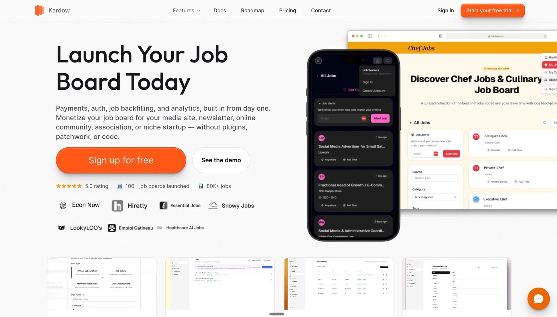 - Kardow: $17–99/month, unlimited jobs, 150–2,000 monthly aggregation credits